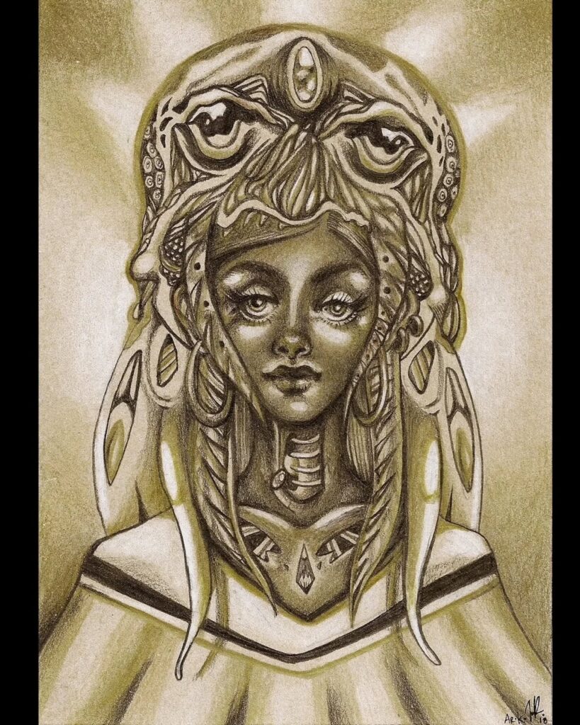 Mar Aroko(アロコ海)は、心と精神を有機的かつ怪物的な身体性を通して融合させる、視覚芸術とパフォーマンスのアーティストです。彼女の作品は、神性、アイデンティティ、フェミニニティ、ボディホラーといったテーマを探求し、自然への深い敬意と生々しく表現的なスタイルが特徴です。