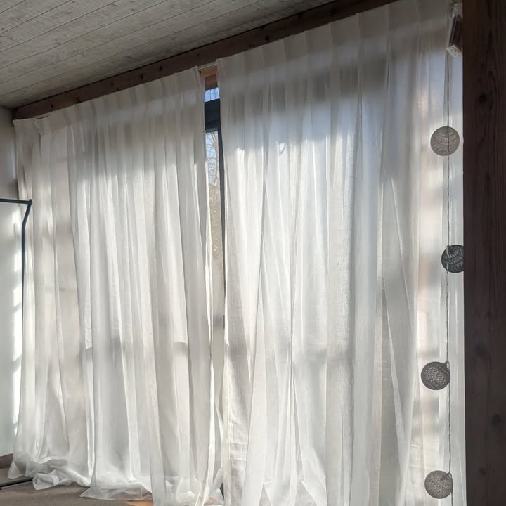 遮熱カーテン+レースカーテン+内窓で明るさを保ちながら暖かさをキープ。出来たらいいな。