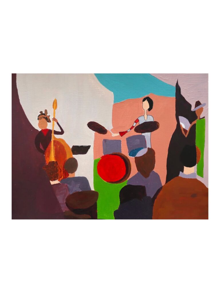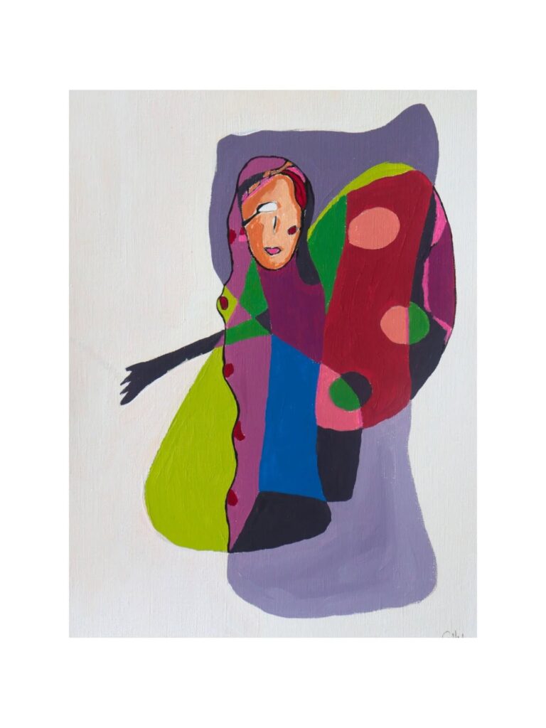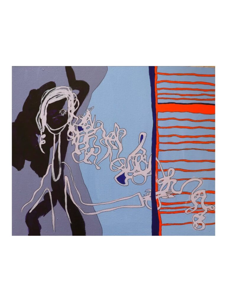 With a background in mathematics rather than formal art training, she approaches painting intuitively, allowing mistakes and accidents to shape the direction of each piece. She works primarily with acrylic, building her paintings in layers and embracing uncertainty in the process.