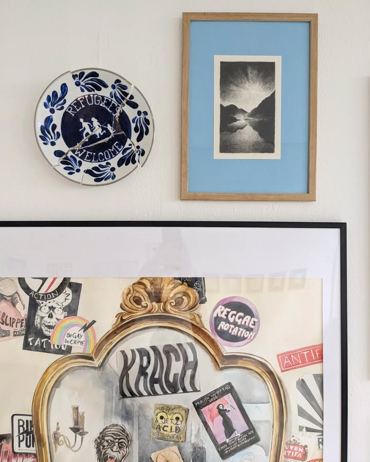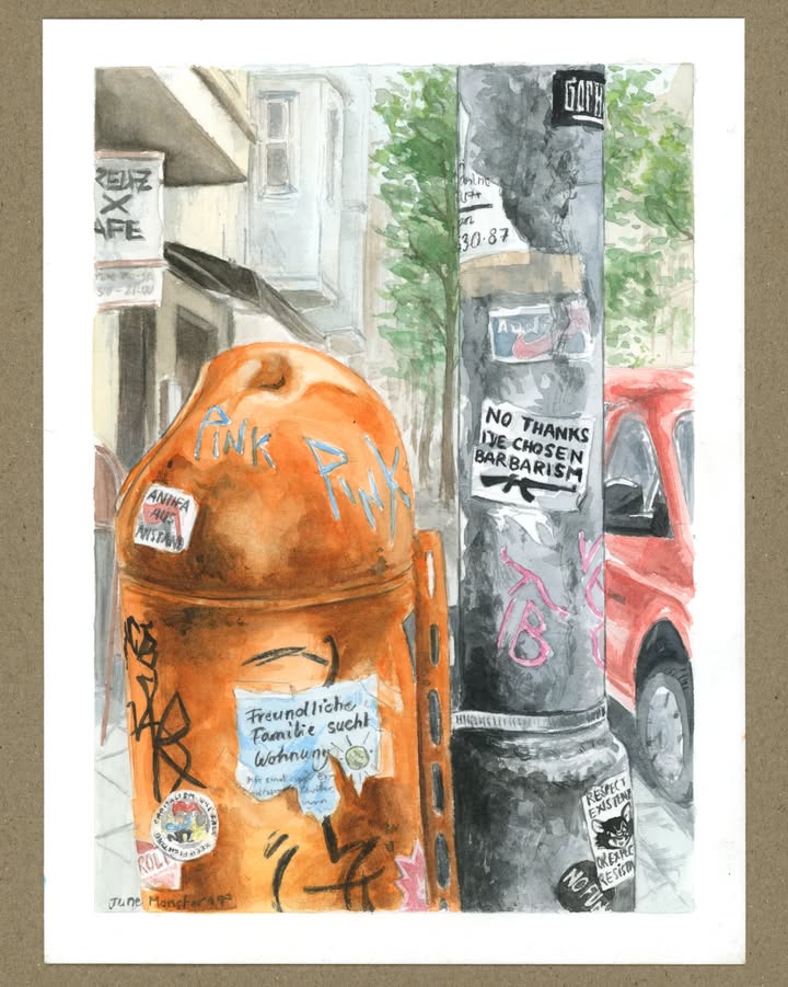 In recent years, June has expanded into oil painting, developing a deeper love for line, color, and light inspired by wandering through new cities and neighborhoods. As global crises continue to shape collective reality, her work has naturally become more political—seeking not to shout, but to connect, to speak gently, and to illuminate what often remains unspoken. Rooted in a belief in community, shared histories, and mutual care, her art reflects the idea that no one stands alone, and that even small images can foster connection, inclusivity, and a sense of belonging.