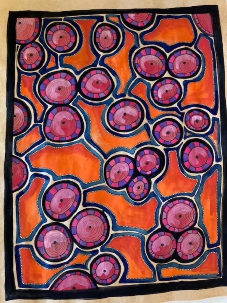 Deeply informed by her work in mental health and education, her practice reflects a belief in art as a safe and powerful way to explore experience beyond words. Having spent much of her life supporting others in their creative journeys, she is now returning focus to her own practice, using patterns to explore identity, transition, and lived experience.