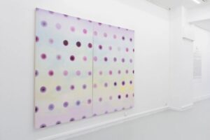 また、このアプローチを通じて、彼女は絵画が持つ時間の広がりと向き合い、鑑賞者にゆっくりと、持続的にイメージと向き合う知覚体験へと誘います。