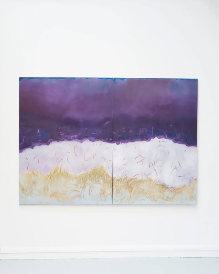 Through floating atmospheres and indeterminate spaces, she is interested in the aesthetic dimension of dreams and in the in-between states of the image, where the visible becomes uncertain. This suspension of the image—neither fully emerging nor already fading—allows her to conceive of space as a mist, a diffuse and shifting environment. She also finds in this approach a way to work with the extended temporalities of painting and to engage the viewer’s attention, inviting a slow and sustained perception of the image.