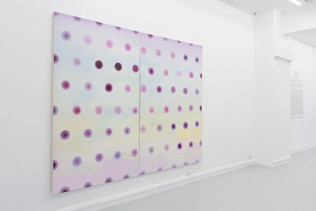 また、このアプローチを通じて、彼女は絵画が持つ時間の広がりと向き合い、鑑賞者にゆっくりと、持続的にイメージと向き合う知覚体験へと誘います。