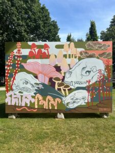 Steffi Lai is a freelance graphic designer and visual artist from coastal British Columbia, Canada. Her practice often blends illustrative and graphic styles with a sense of play. She is drawn to the old and the liminal: quiet, in-between spaces where things may often be ignored or forgotten, and transitions such as nature’s life cycles. Her favourite subject matter and themes vary from ghosts and spirits, commentary on the human experience, life and death, flora and fauna, natural landscapes, and even some humour, which all find their way into her work. Lately, she’s been interested in how we interact with space and how places carry emotional weight, memory, history, or imagined presences, and she tries to approach these ideas with curiosity, care, and play.