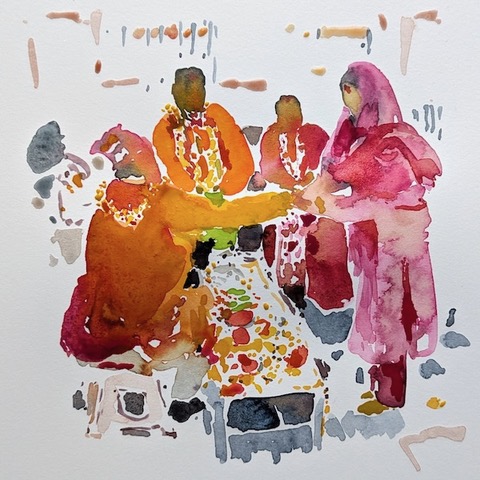 アトリエでは、インク、水彩、油彩を用いて制作しています。