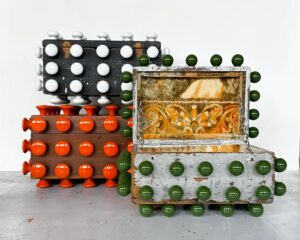 「この1年間、私はファウンド・オブジェクトによる彫刻を通して『意味の飽和(semantic satiation)』という概念を探求してきました。ありふれた日用品(ドアノブ、ビーズ、車の鍵など)を本来の文脈から切り離し、大量に用いることで、それらは元の姿や意味を失い、認識できないものへと変化します。見慣れたものを反復することで鑑賞者の期待は揺さぶられ、作品の構造を読み解こうとしながら、その要素を解体しようとするよう促されるのです。」
